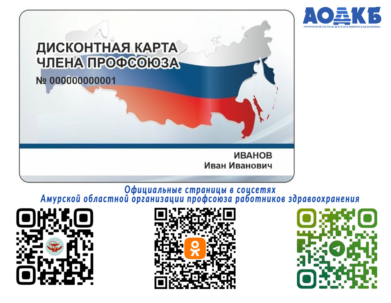 Сотрудники, желающие вступить в профсоюз и получить дисконтную карту, могут обратиться к новому председателю первичной профсоюзной организации АОДКБ – Страховой Светлане Владимировне.